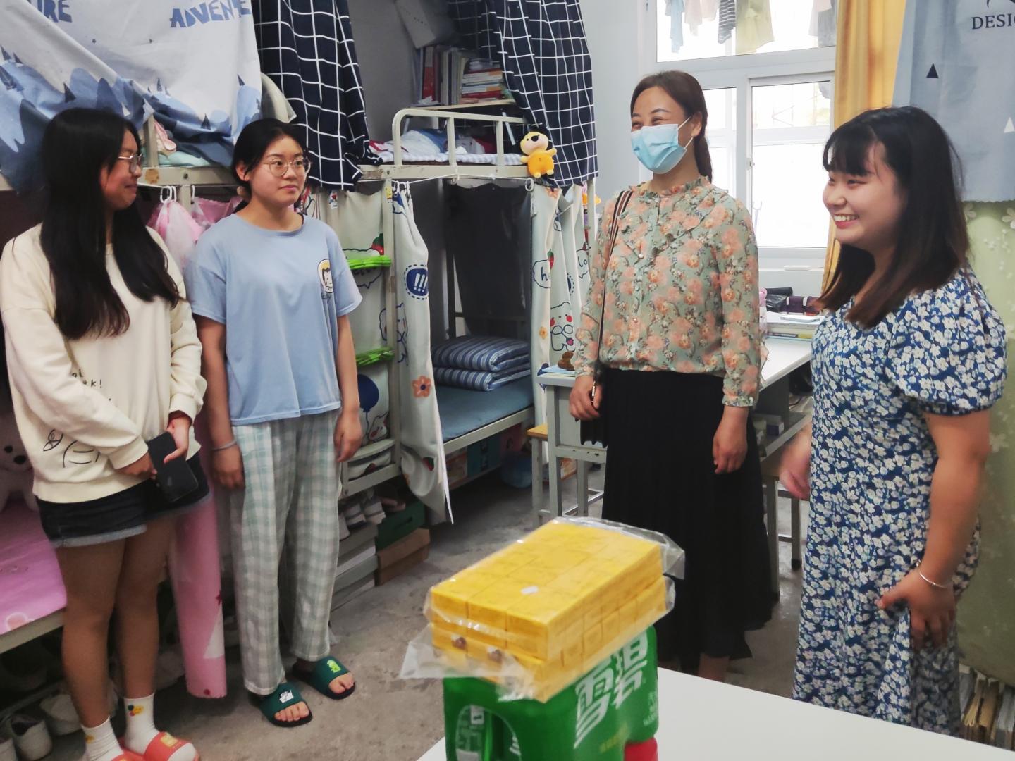 6月3日晚上,公司党总支书记刘麦霞、辅导员李燕燕、王然走访员工宿舍,为同学们送去节日的祝福。在走访过程中,刘麦霞与同学们亲切交谈,询问大家学习生活中遇到的困难和问题,并叮嘱同学们遵守疫情防控要求,做好个人防护。刘麦霞表示,期末考试临近,希望同学们合理规划时间,克服困难、积极备考。