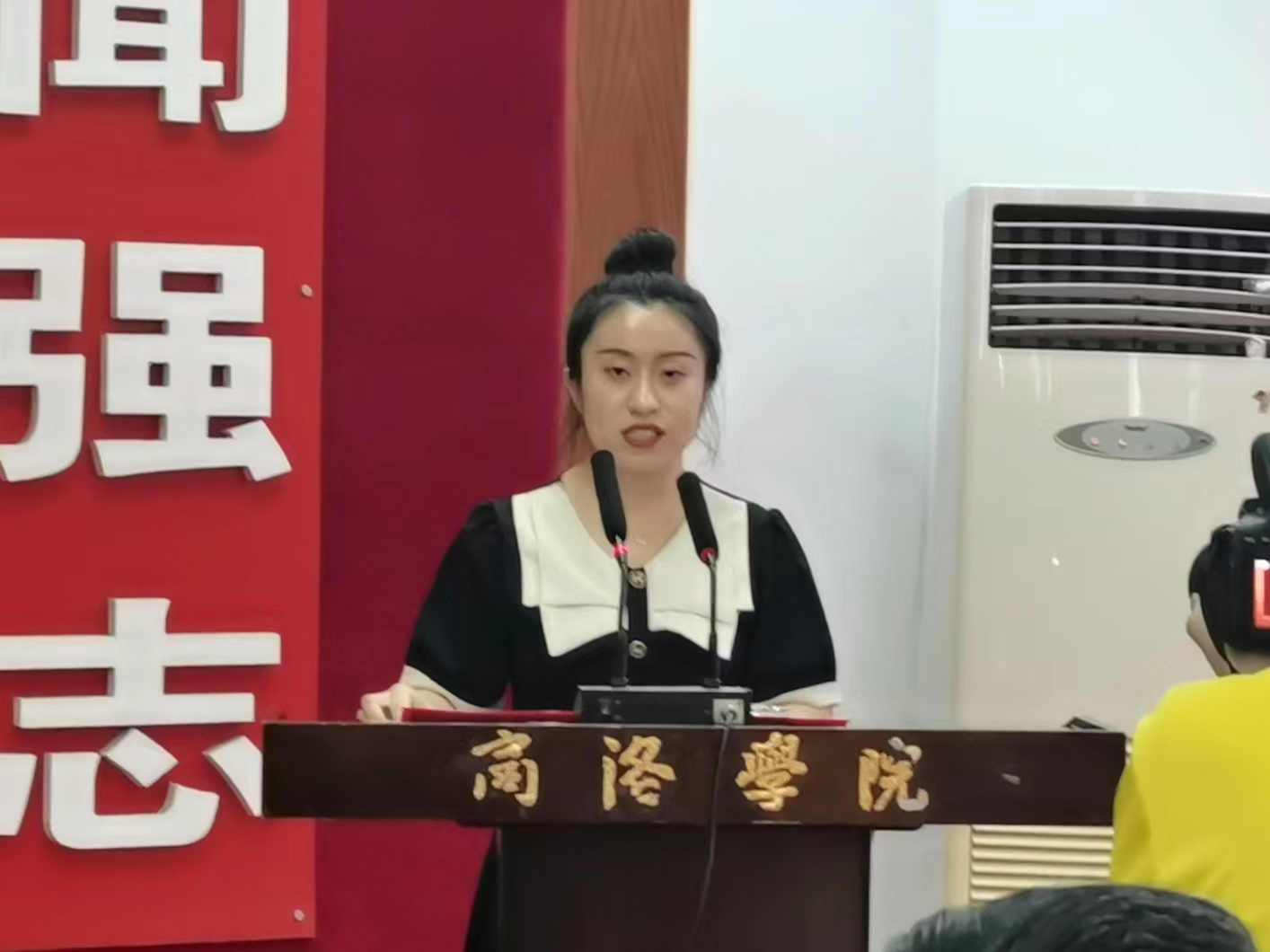 韩冰和樊艺腾分别代表毕业班员工和在校生发言。韩冰深情回顾了大学四年在马院的点点滴滴,表达了对公司和老师的诚挚感谢,对同窗好友朝夕相处的依依不舍,表示将牢记思政人的使命和责任,不懈奋斗,砥砺前行。樊艺腾向即将踏上新征程的学长学姐送上最真挚的祝福,祝愿他们尽情奔赴属于自己的星辰大海和浩瀚蓝天。