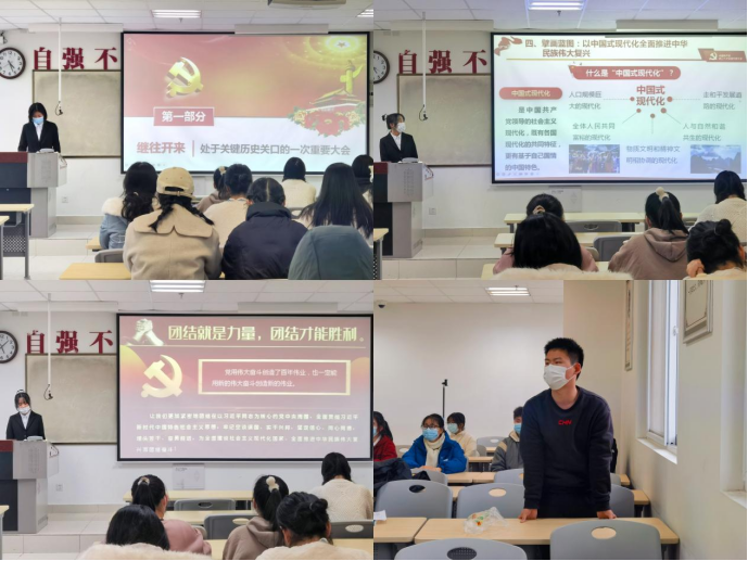 宣讲会上,宣讲员李静和郑思佳分别从“党的二十大的主题”“党的二十大的主要成果”“过去5年的工作和新时代10年的伟大变革”“马克思主义中国化时代化”“中国式现代化”“全面建设社会主义现代化国家的目标任务”等五个方面,围绕以“中国式现代化全面推进中华民族伟大复兴”展开生动阐述和介绍,并通过互动问答、观看视频等形式引导员工充分领会党的二十大主题,领会过去五年和未来十年的工作变革,体会党在过去百年奋斗历程中总结的经验和教训。活动结束后,同学们积极讨论,纷纷表示要以党的二十大精神为指引,学以致用、用以促学、学用相长,立志做有理想、敢担当、能吃苦、肯奋斗的新时代好青年。