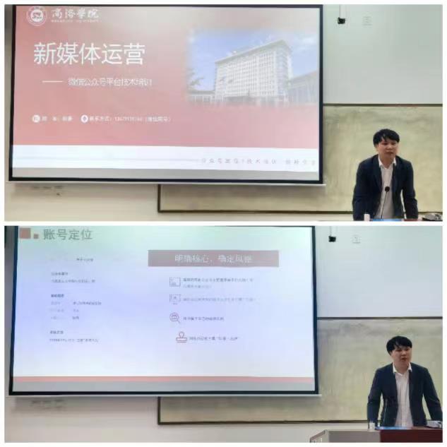 谢豪以公司微信公众号“思政火炬”为例,就公众号的账号主体、风格定位、标题拟定、摄影摄像等四方面展开讲解,详细介绍了运营公众号的相关技巧和操作指引。他指出要明确账号风格、内容定位和服务主体,了解账号运营的后台和用户,善于归纳、敢于创新,不断丰富公众号内容。谢老师逐一解答了同学们提出的问题,激励大家珍惜学习机会,实现创造性转化、创新性发展,推动公众号运营水平的持续提高。