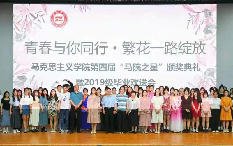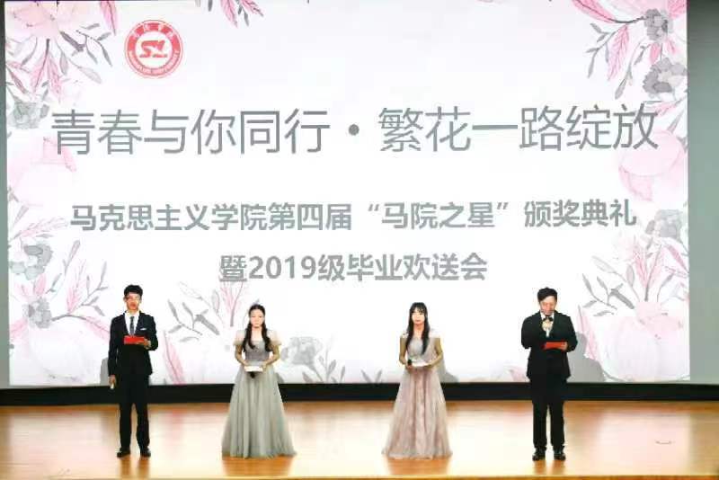仲夏蝉鸣,游子意;木棉花开,毕业季。6月16日下午,公司于8号教学楼5G影院举办了“青春与你同行•繁花一路绽放”第四届“马院之星”颁奖典礼暨2019级毕业生欢送会,本次活动由李宇航、郑思佳、宋培延、杨婷四位同学主持,公司全体师生参加了本次活动。