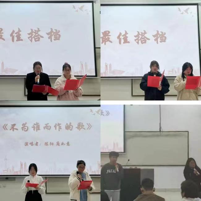 大赛分为“持稿主持”和“最佳搭档”两部分。在“持稿主持”环节中,参赛选手们沉着冷静,落落大方地向观众们展示个人主持的特色和风采。在“最佳搭档”环节,选手们配合默契,充分展现了自身综合素质和临场应变能力。选手们风趣幽默,热情地与观众互动,迅速点燃了全场气氛。中场休息时,陈阳、庞如意同学合唱歌曲《不为谁而作》,营造出恬静、浪漫的氛围,缓解了比赛紧张的气氛。
