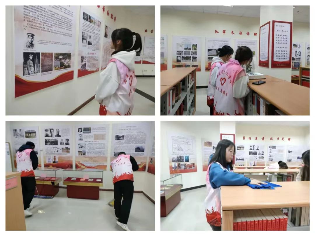 活动过程中,志愿者们提前十分钟到达1号教学楼前集合。以饱满的热情和最佳的精神面貌迎接此次图书馆志愿服务活动。志愿者们在图书管理员的带领下,在明确图书馆的需求,领取相关清洁用具后,开启对图书馆会议室以及商洛红色文化资料馆的全面清洁并在商洛红色文化资料馆里参观学习。同学们纷纷表示在生活中也应发扬劳动精神,学习先辈们吃苦耐劳的品质和毅力。活动接近尾声,负责人对工作进行点评,对大家的积极贡献表示肯定和感谢,最后合影留念。