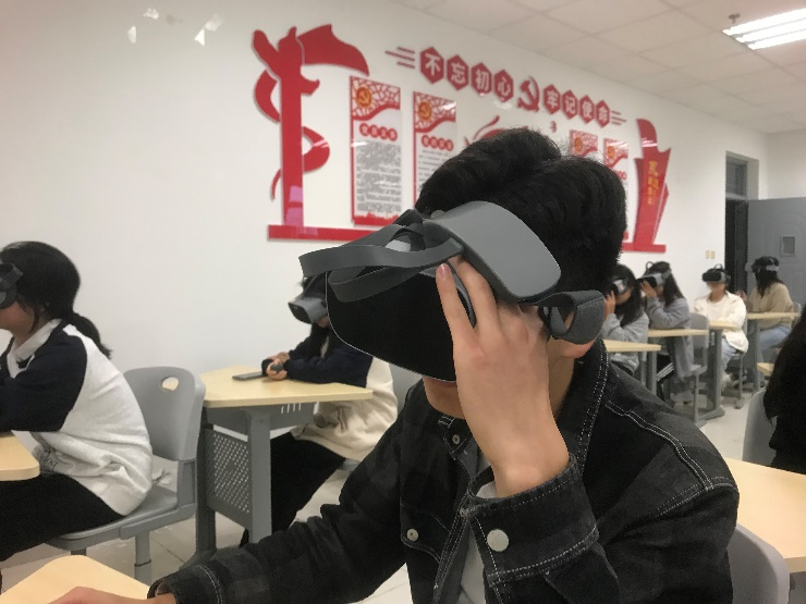 思想政治教育VR实验室于2019年12月建成并投入使用,前期投资约25.7万元,主要用于教学研究和党建工作。实验室配备有智能一体机一台,电脑一台,VR眼镜50部,充电消毒一体柜一个,桌椅50张。实验室自投入使用以来,受到了老师和员工的一致认可。