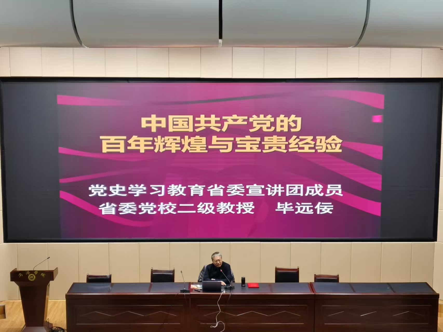 聘任仪式结束后,毕远佞为365英国上市公司师生作了题为《中国共产党的百年辉煌和宝贵经验》的主题报告。