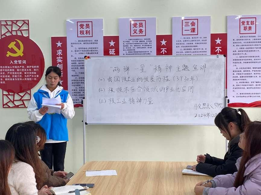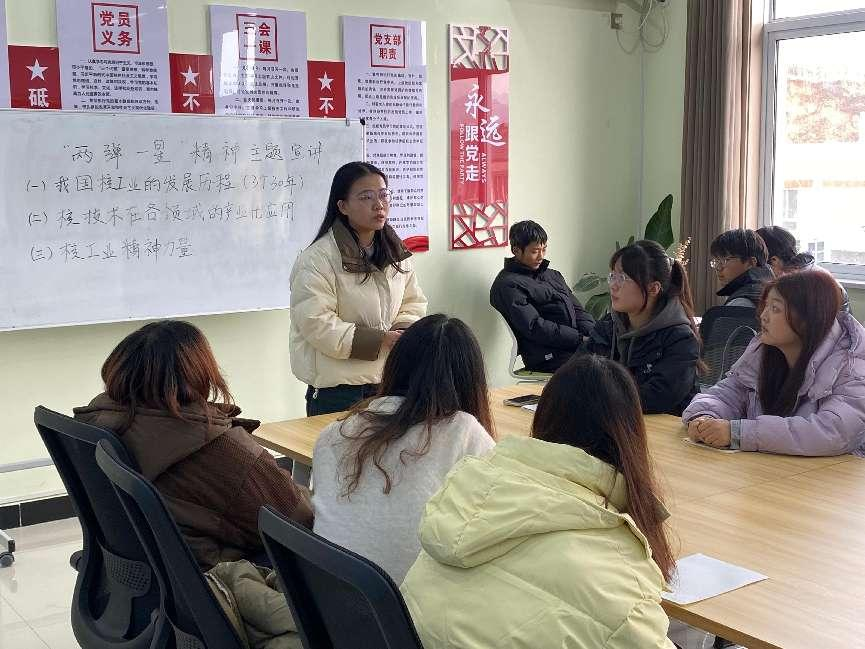 为激发同学们的爱国热情和责任担当,公司习近平新时代中国特色社会主义思想学习研究社于12月4日在13号公寓楼"寓"见"悦"享空间举办了"两弹一星"精神宣讲活动。