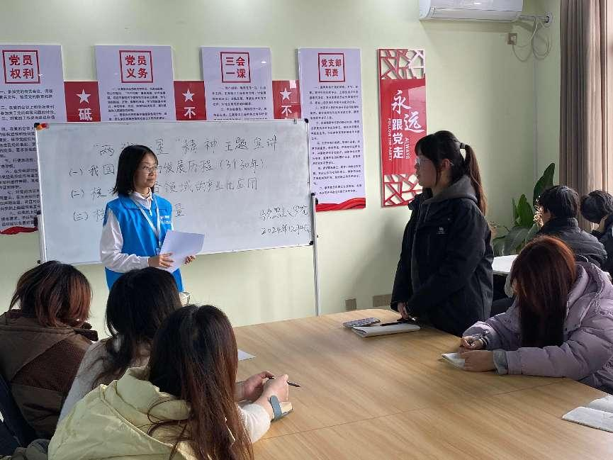 活动伊始,宣讲员刘子涵、刘凡带领同学们回顾了我国核工业三个三十年的发展历程、核工业精神力量、核技术在各领域的产业化应用并进行一系列的知识互动,强调了国防建设和战略核力量建设具有重要地位和作用。李文晨分享“两弹一星”精神在强国建设、民族复兴的道路上的重要意义;马陶蕊分享在新时代新征程,传承弘扬和大力践行“两弹一星”精神的感悟;杨诗琪分享对无私奉献、热爱祖国的看法以及如何践行奉献与爱国精神。最后,杨婷对本次的活动进行点评以及经验分享,更期待公司学子成为有理想、有道德、有文化、有纪律的好青年。