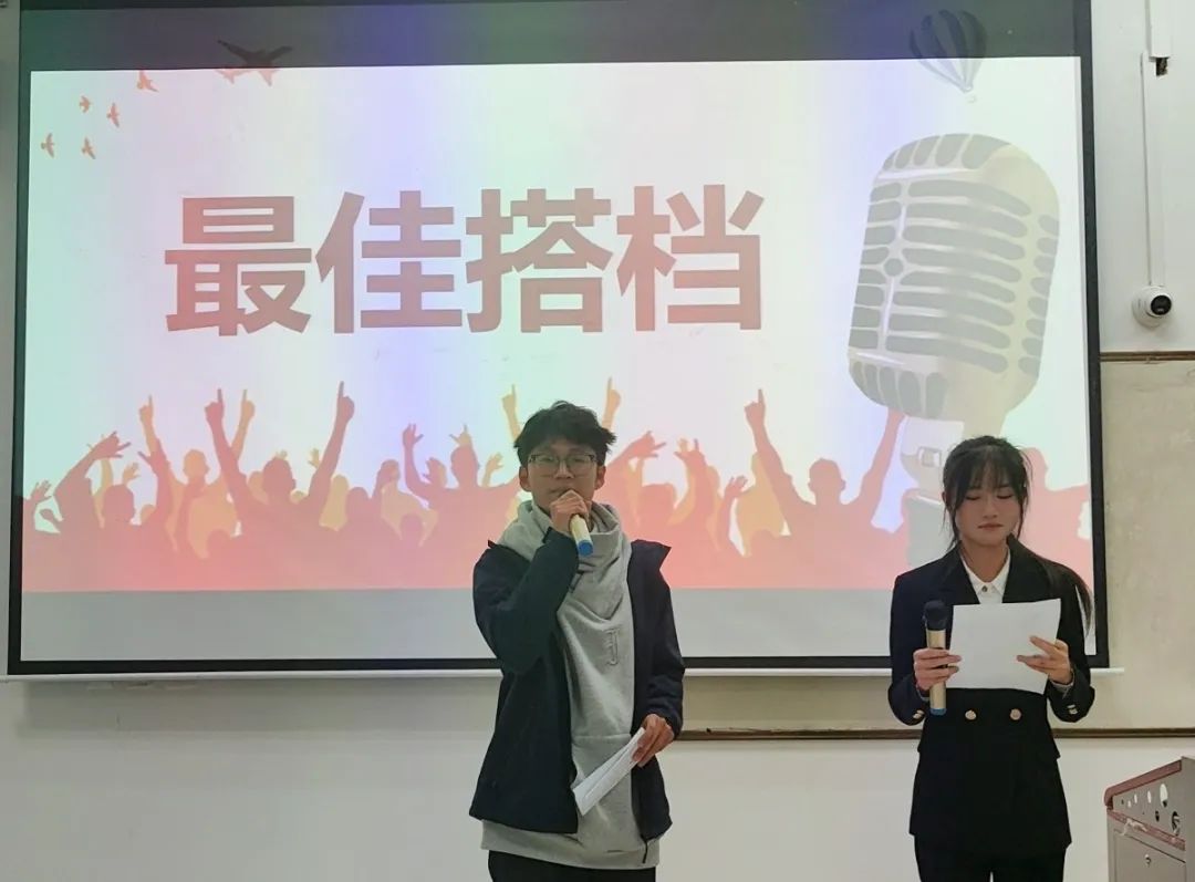 本次大赛由“持稿主持”和“最佳搭档”两个环节组成。在“持稿主持”环节中,参赛选手们沉稳笃定,大放异彩,带来的主持更是风格各异,十分精彩,优雅大方地向观众们展露个人主持的独特韵味和卓越风采,赢得了大家的掌声。中场休息,文艺部思政2202班庞如意带来歌曲《落空》,缓解了比赛的紧张氛围。在“最佳搭档”环节,临时抽签组队的选手们配合默契,充分彰显了自身的全面素养和处变不惊的应变能力。