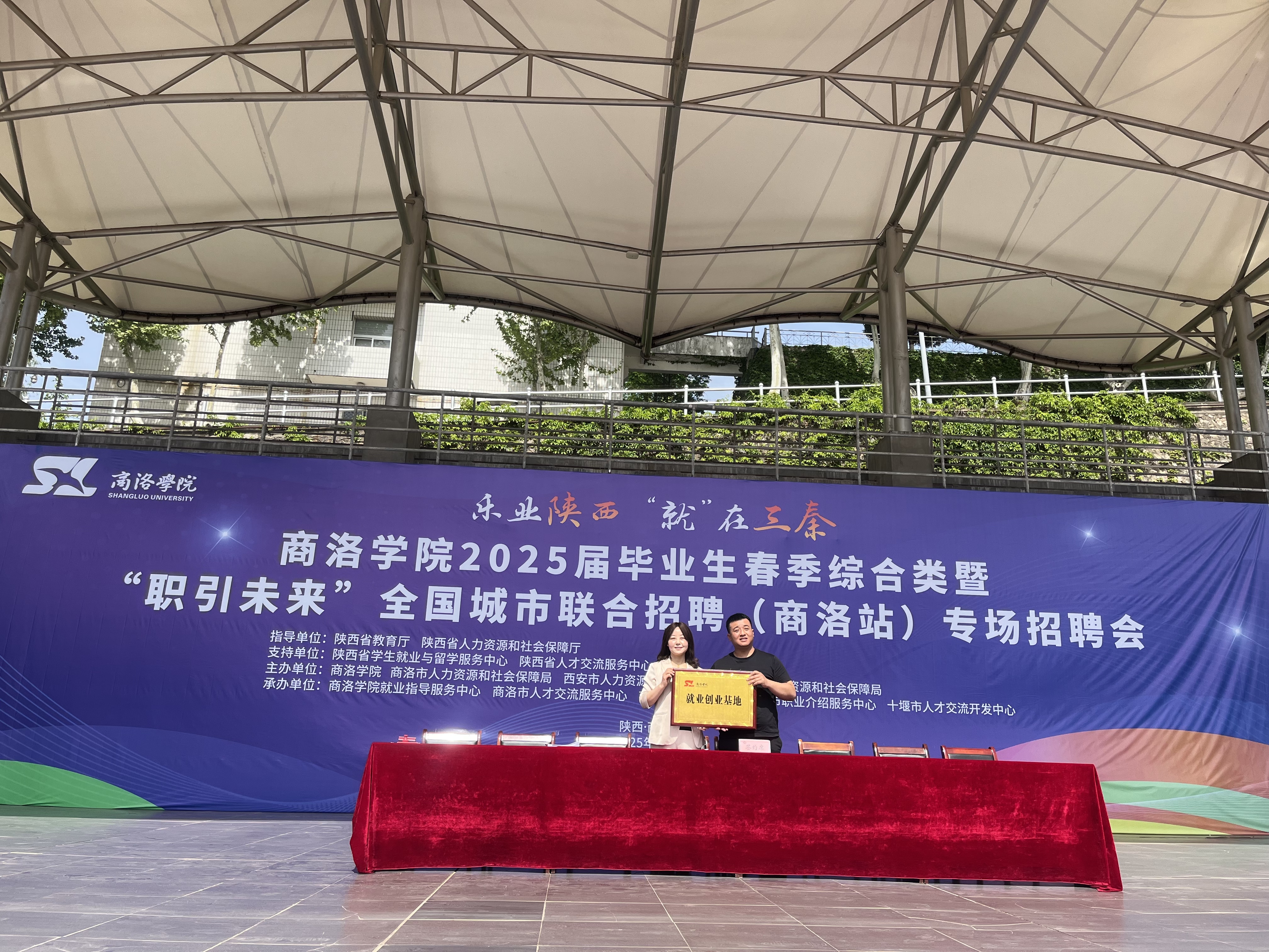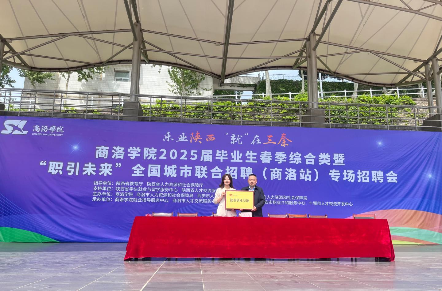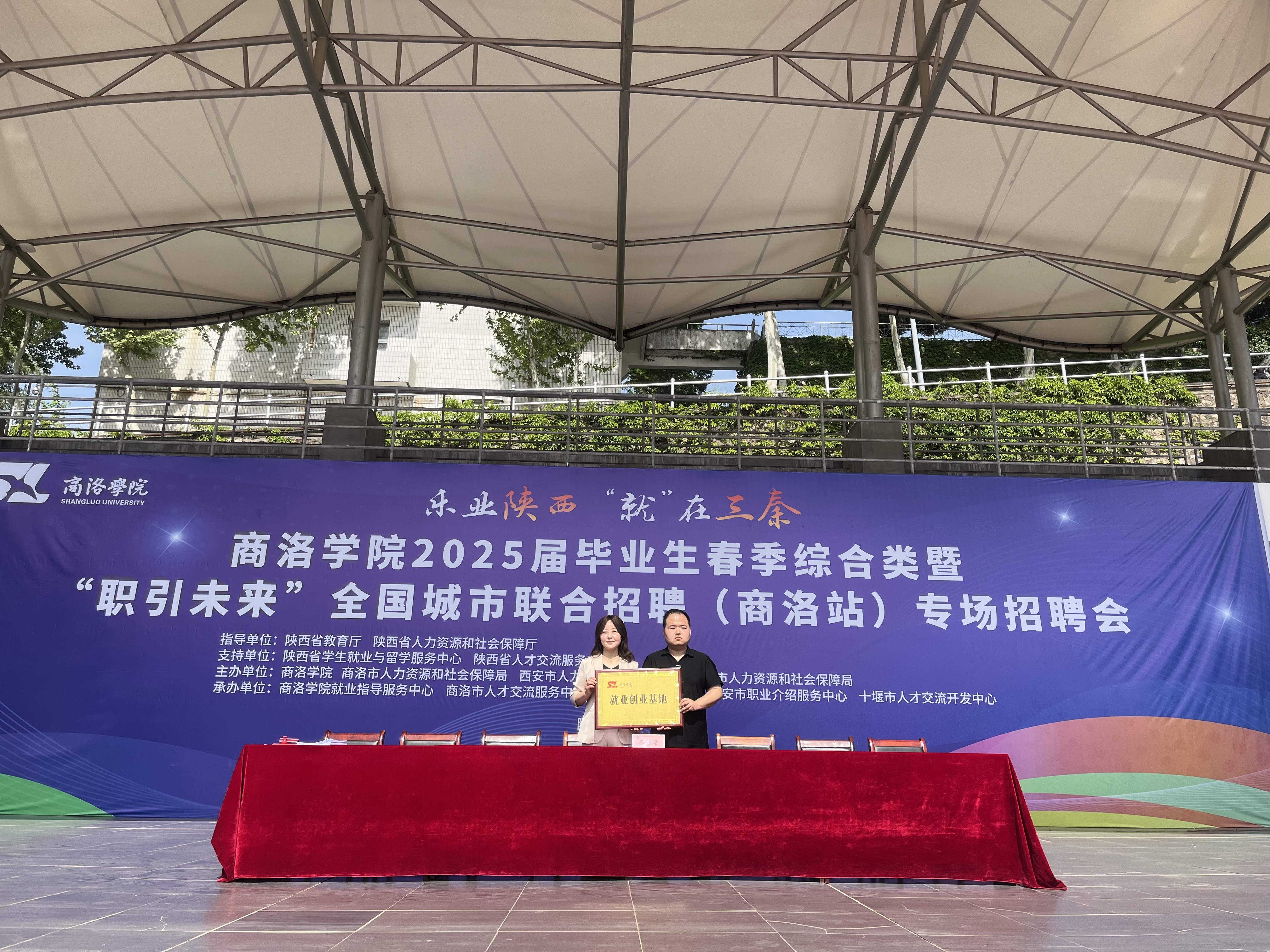 招聘会上,公司党总支书记刘麦霞代表公司与西安蓝田工业园高级中学、华图教育科技有限公司商洛分公司、陕西江山和院康养有限责任公司签署《就业创业基地建设协议》,并为三家单位授牌。此次活动旨在搭建校企联动平台,拓宽毕业生就业渠道。